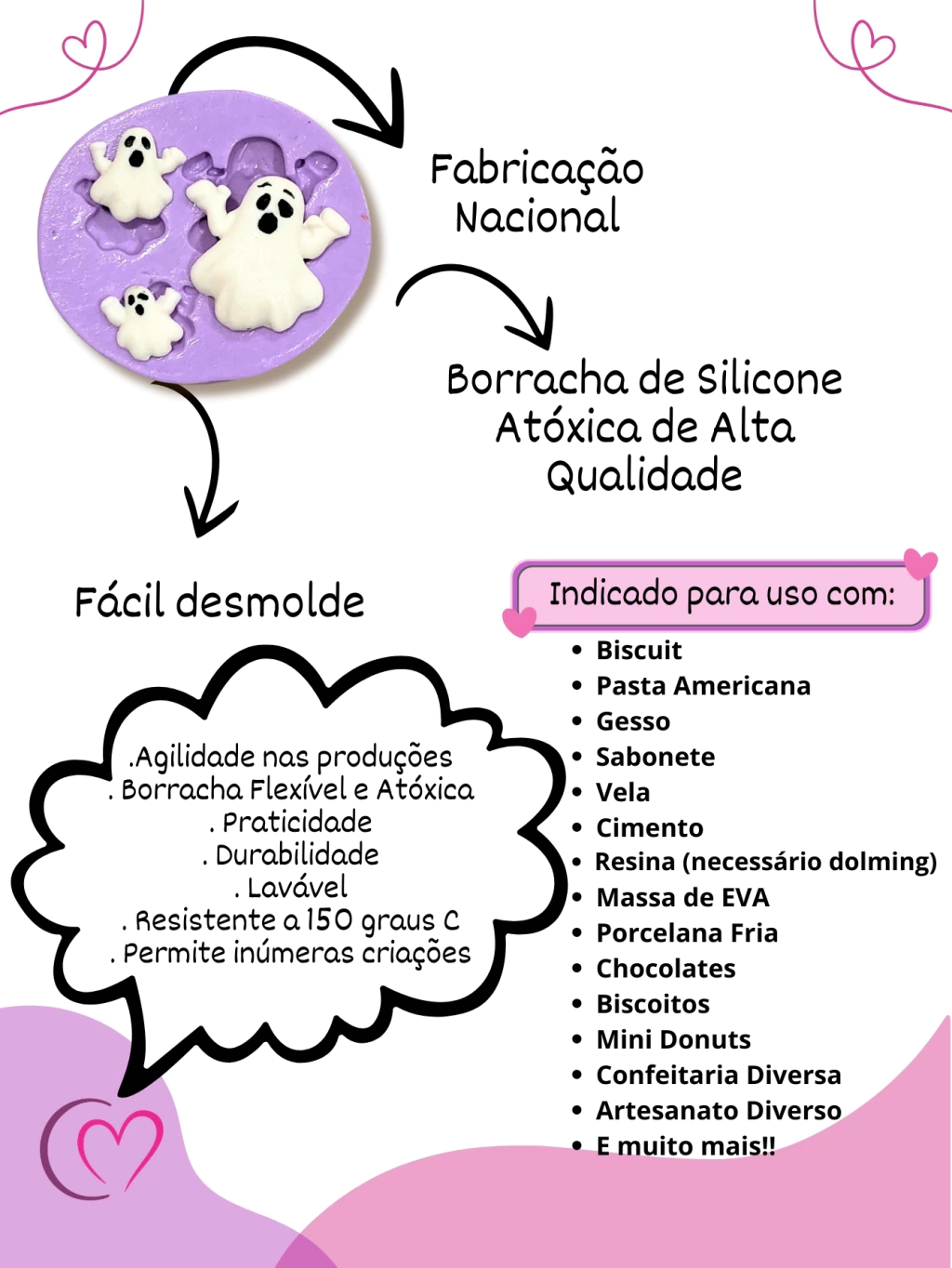 Molde de silicone para decorar e artesanato. A cor do molde pode variar mediante disponibilidade. Tamanho total do molde: 9X7,5CM Tamanho de cada item individual após modelagem MAIOR MEDE 4CM E MENOR 2CM