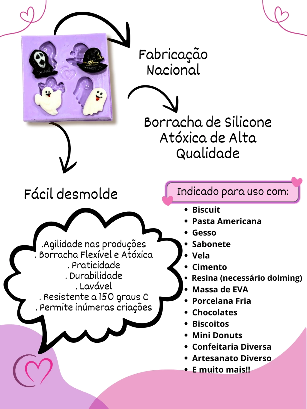 Molde de silicone para decorar e artesanato. A cor do molde pode variar mediante disponibilidade. Tamanho total do molde: 6 x 6 cm Tamanho interno aproximado: 2 x 1,5 cm / 2 x 2 cm