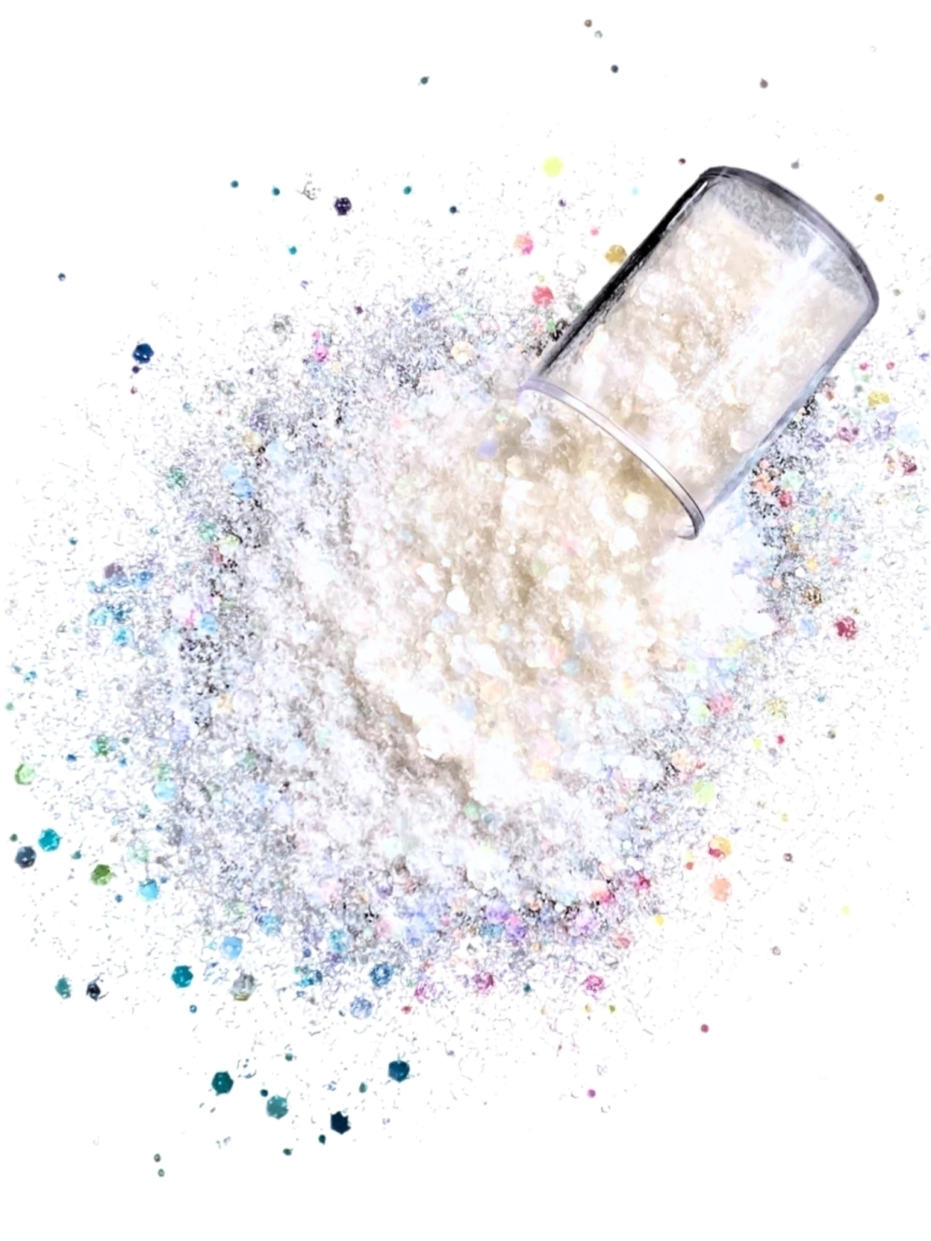 "Glitter Holográfico especial em poliéster importado formato hexagonal, possui brilho intenso com partículas refletoras de luz que promovem um efeito incrível, fabricados em 3 tamanhos de flocos.