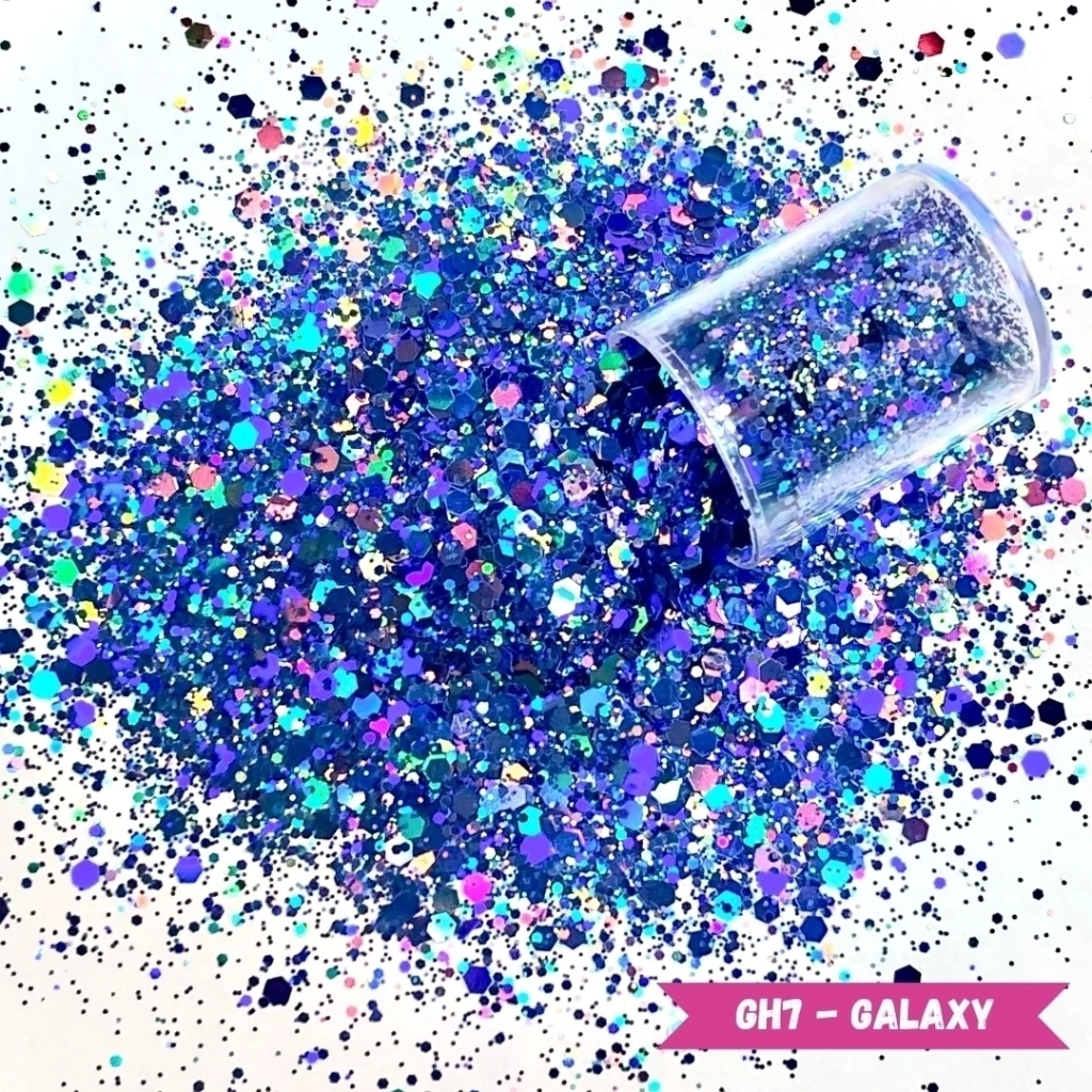 Glitter Metálico especial em poliéster importado formato hexagonal, possui brilho intenso com partículas refletoras de luz que promovem um efeito incrível, fabricados em 3 tamanhos de flocos.