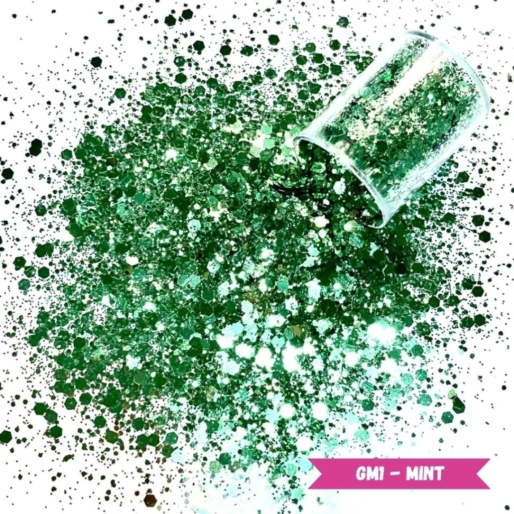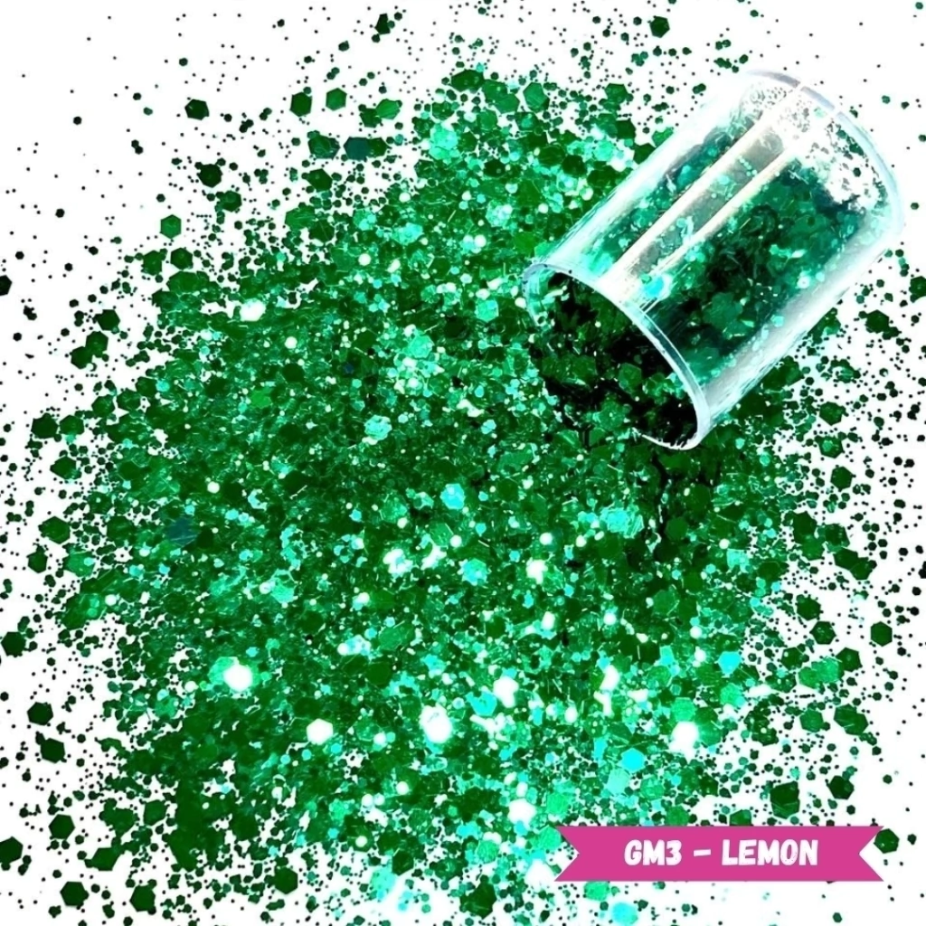 Glitter Metálico especial em poliéster importado formato hexagonal, possui brilho intenso com partículas refletoras de luz que promovem um efeito incrível, fabricados em 3 tamanhos de flocos.