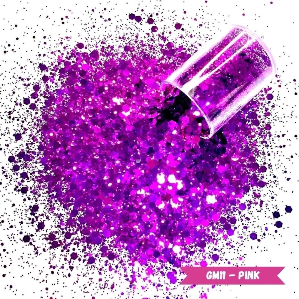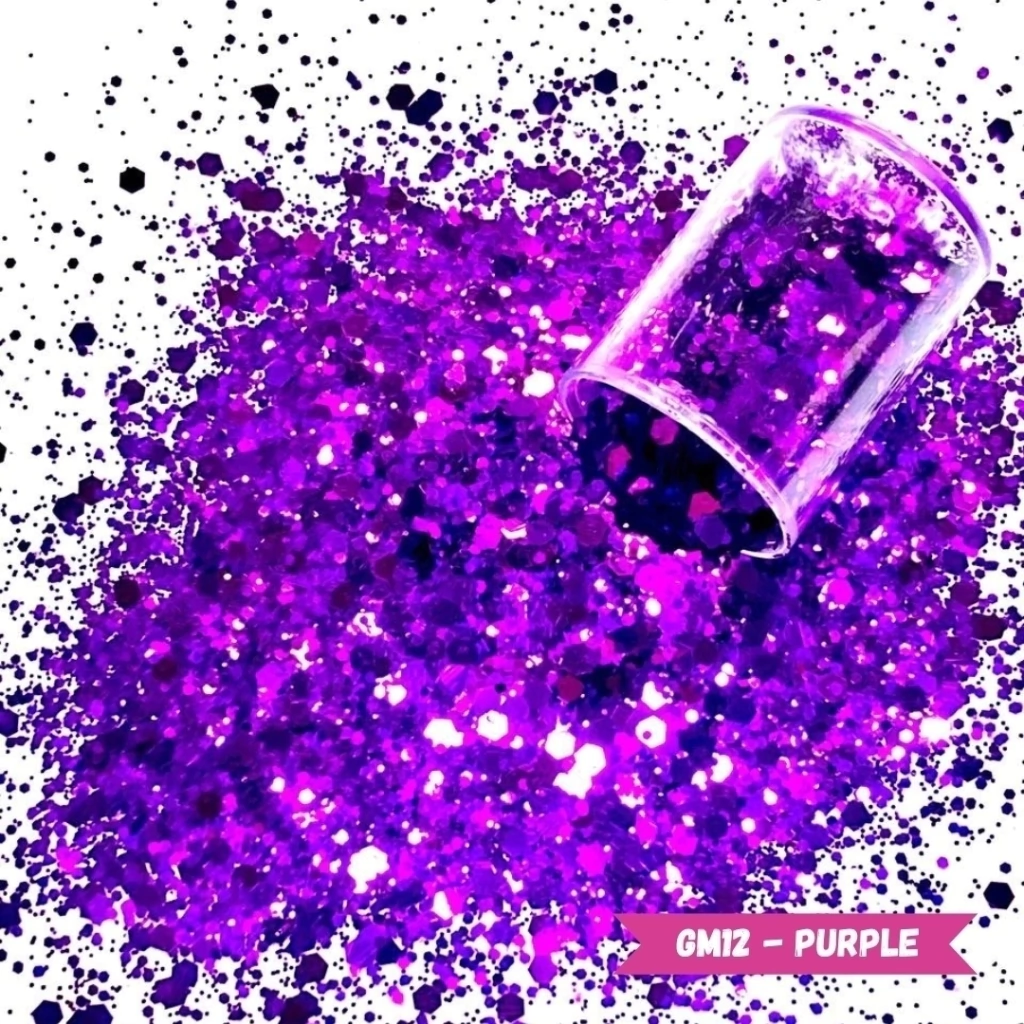 Glitter Metálico especial em poliéster importado formato hexagonal, possui brilho intenso com partículas refletoras de luz que promovem um efeito incrível, fabricados em 3 tamanhos de flocos.