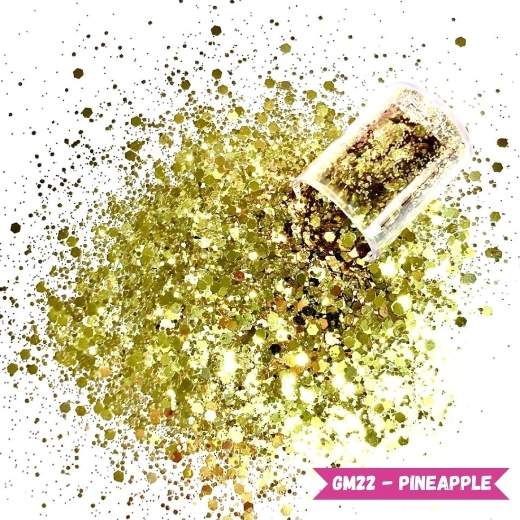 Glitter Metálico especial em poliéster importado formato hexagonal, possui brilho intenso com partículas refletoras de luz que promovem um efeito incrível, fabricados em 3 tamanhos de flocos.