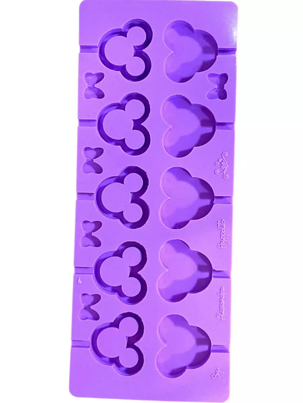 Molde de silicone para pirulitos com 10 cavidades formando 5 pirulitos chocalhos completos,medida total do molde 22,5x9cm, cada pirulito mede 3cm. Coleção By Alessandra Hyppolito.