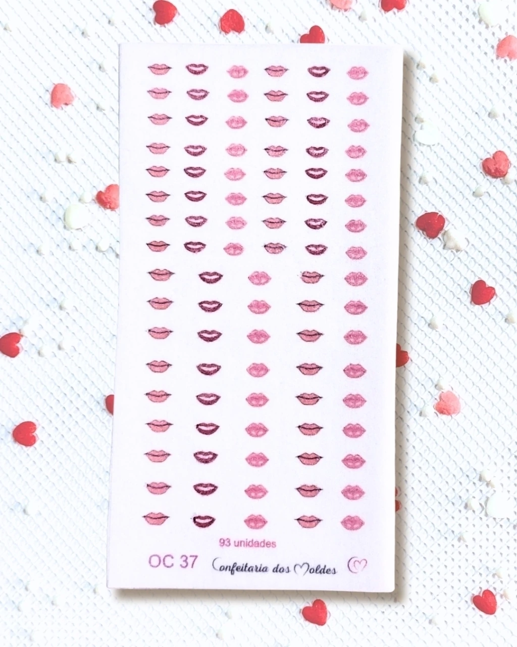 Cartela de bocas comestíveis destacáveis contendo 93 unidades sendo 48 P e 45 M produzidos em papel de arroz, próprio para confeitaria e indicado para utilizar em doces feitos com pasta de açúcar ou pasta de leite em pó. Manusear com delicadeza para não rasgar e/ou amassar.