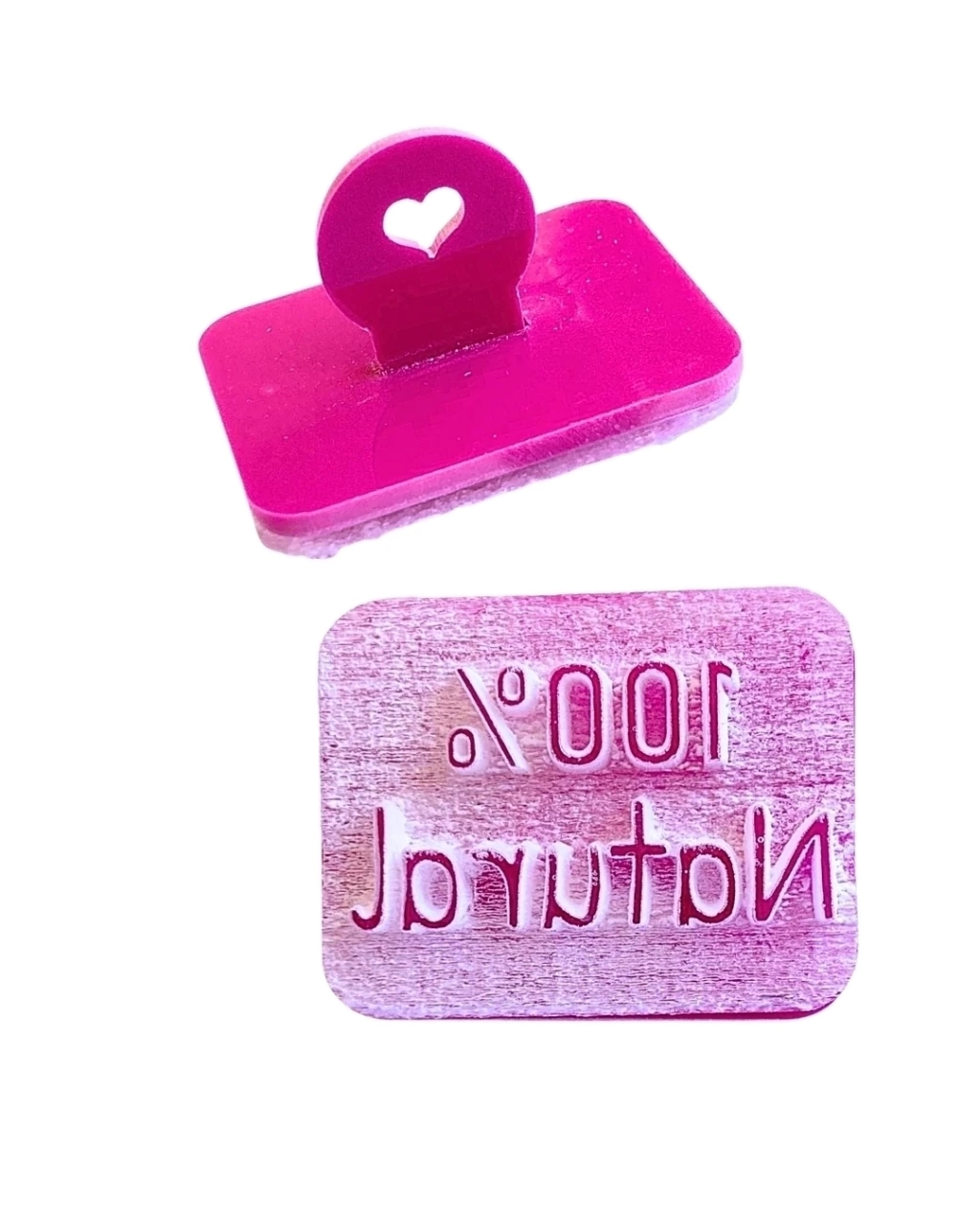 Carimbo marcador de acrílico para sabonete. Frase "100% NATURAL".