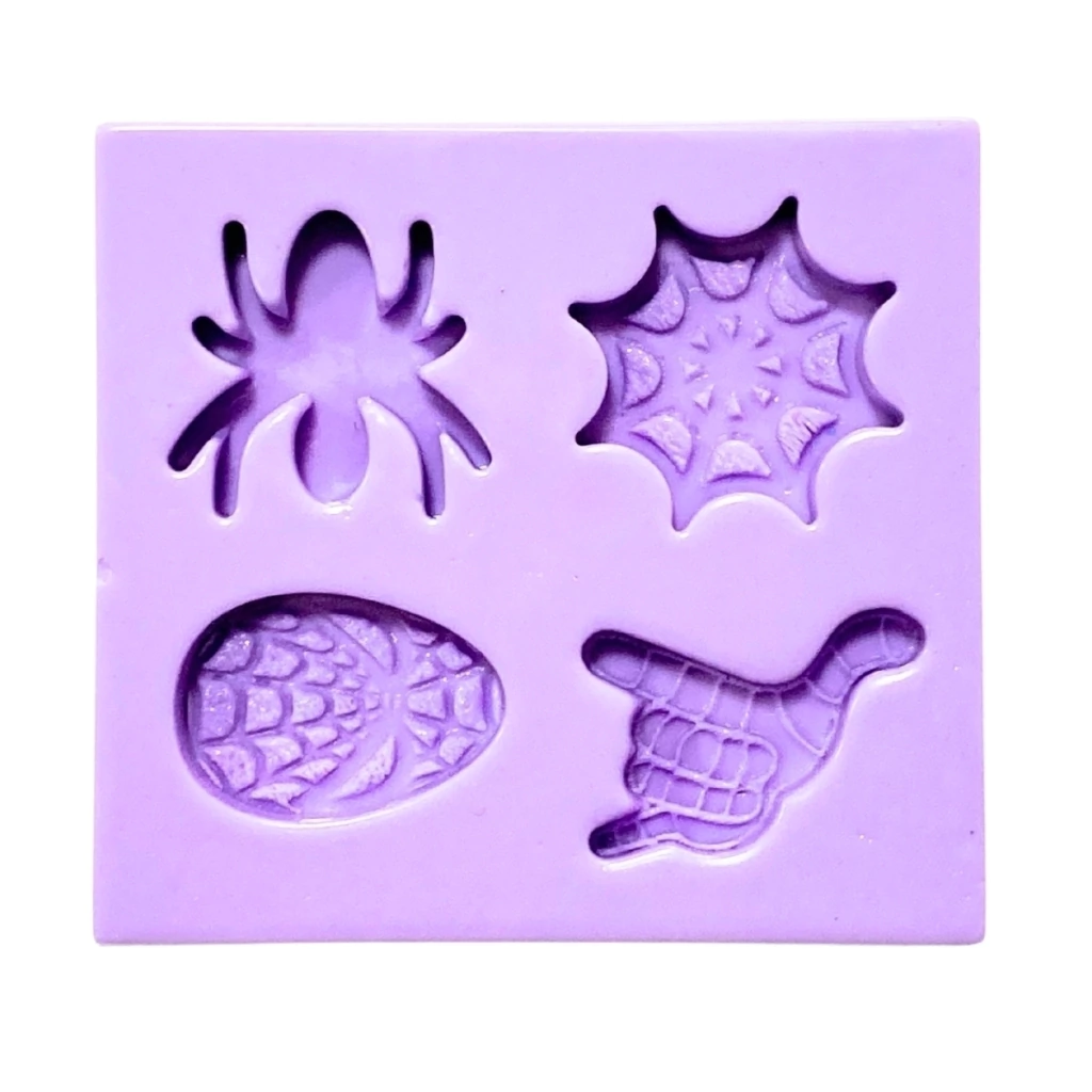 Tamanho interno aproximado: 2 x 1,5 cm (aranha) / 2,5 x 1,5 cm (rosto) / 2,5 x 2,5 cm (teia) / 2,5 x 2 cm (mão)