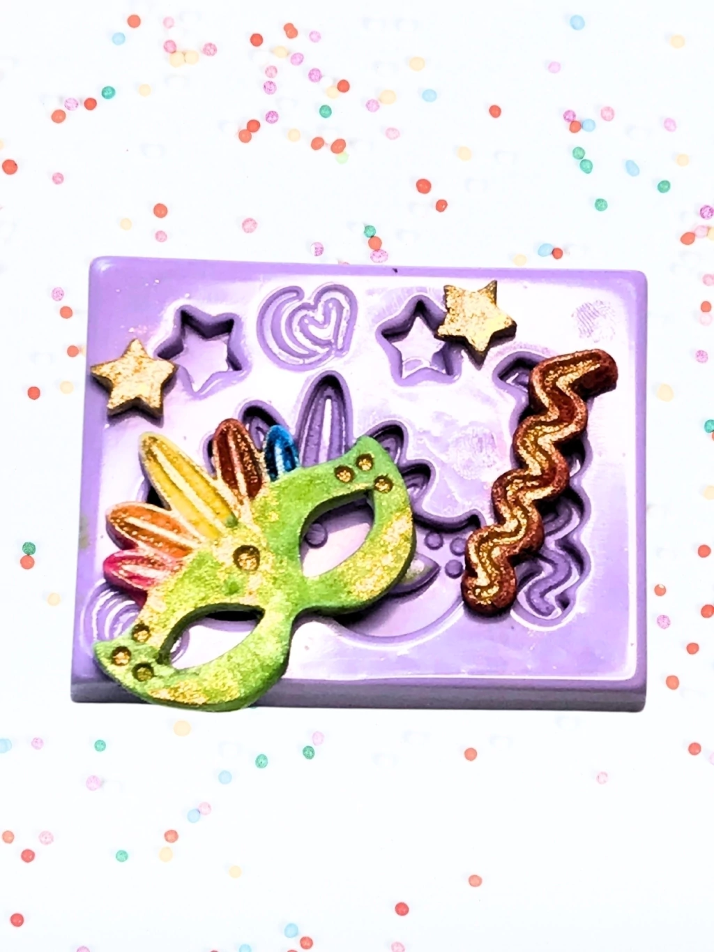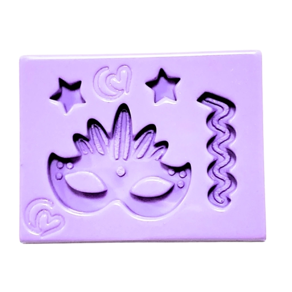 Tamanho interno aproximado: 2,5 x 4 cm (máscara) / 3 x 1 cm (serpentina) / 1 cm (estrelas)