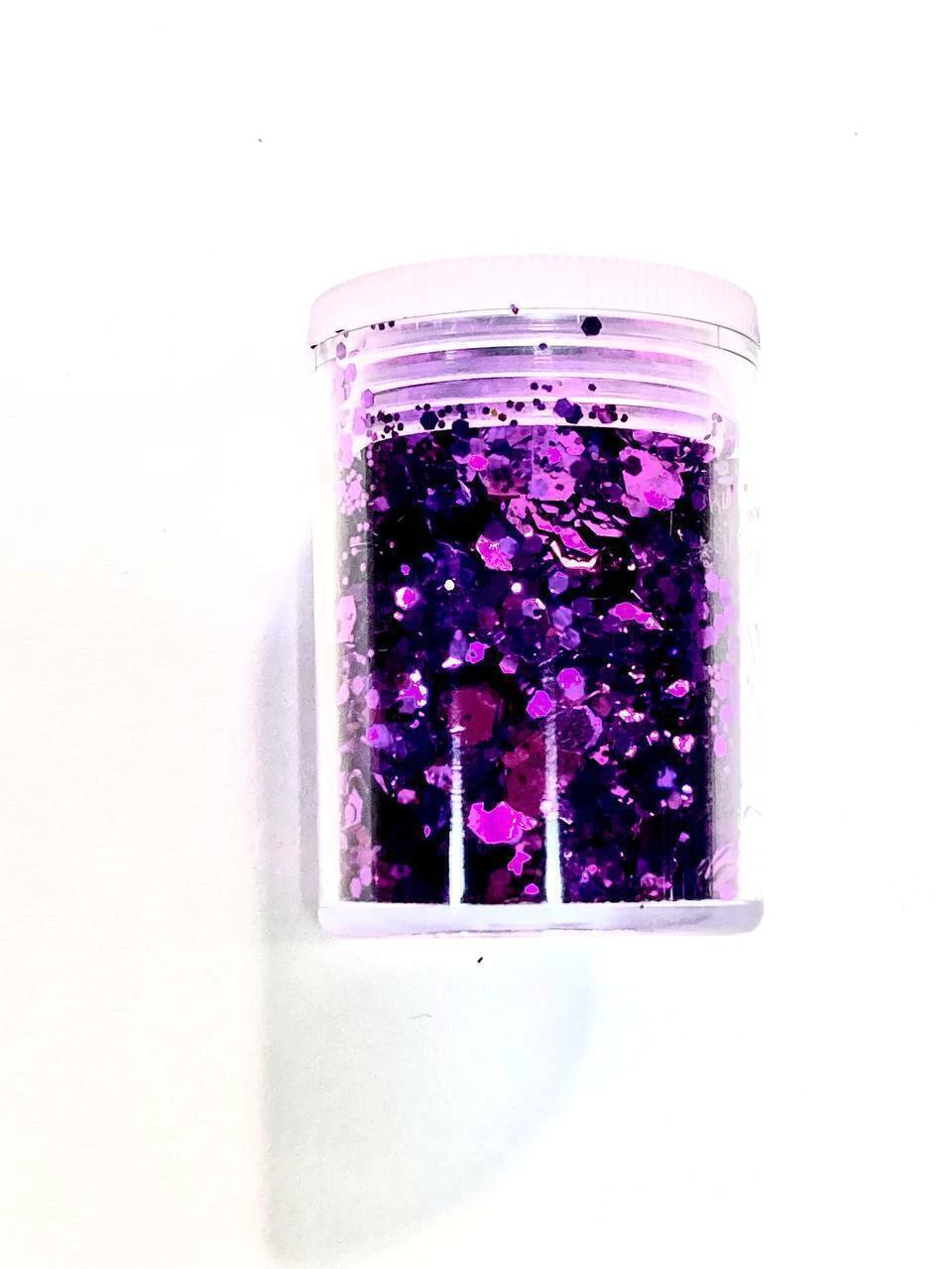 Glitter Metálico especial em poliéster importado formato hexagonal, possui brilho intenso com partículas refletoras de luz que promovem um efeito incrível, fabricados em 3 tamanhos de flocos.