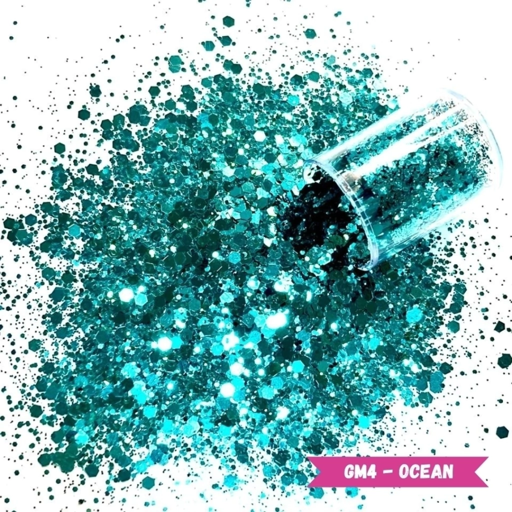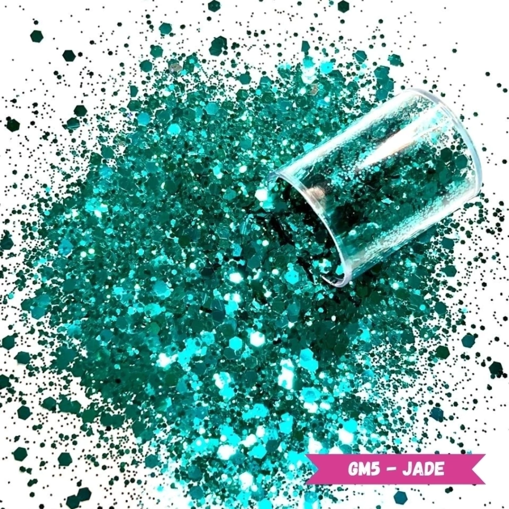 Glitter Metálico especial em poliéster importado formato hexagonal, possui brilho intenso com partículas refletoras de luz que promovem um efeito incrível, fabricados em 3 tamanhos de flocos.