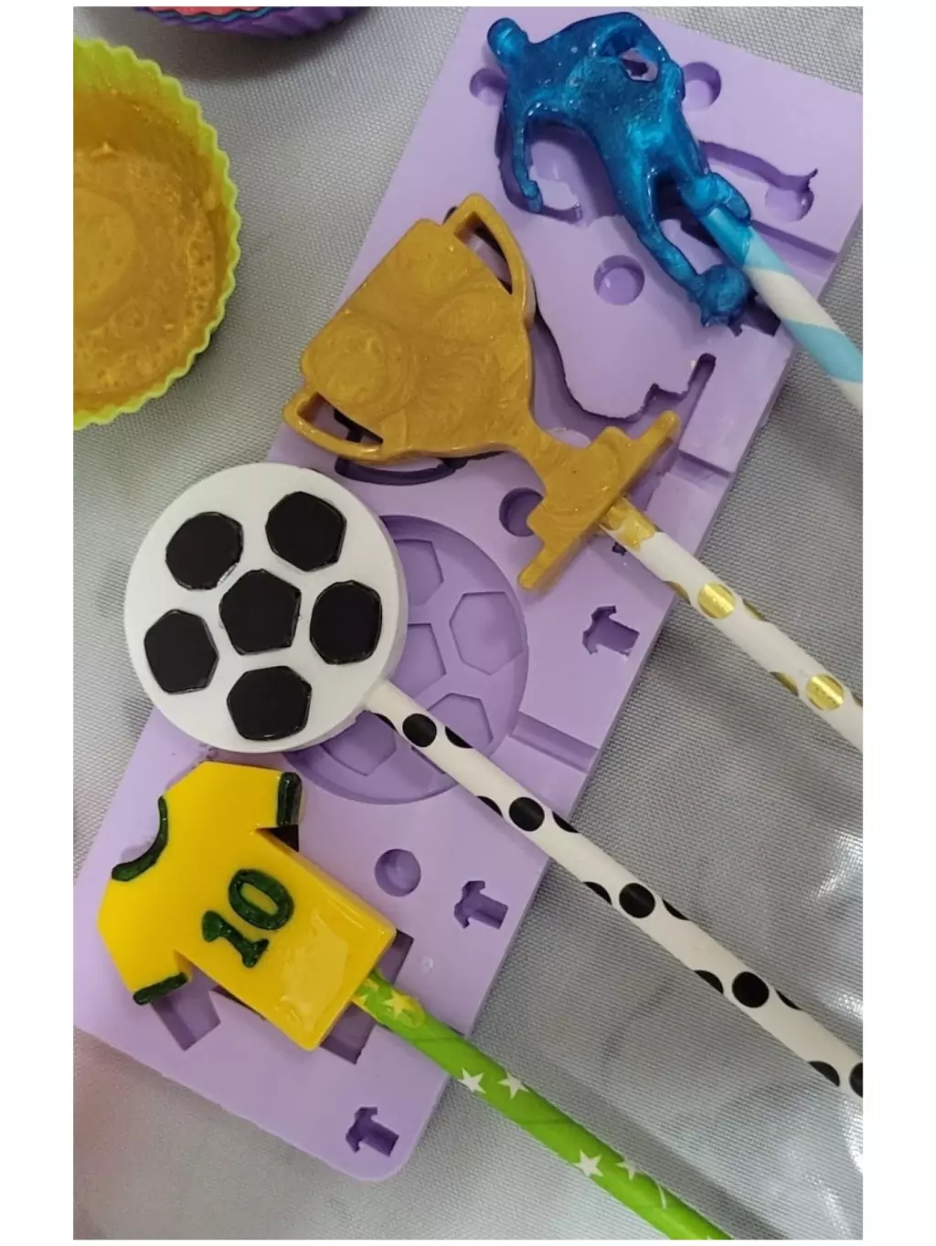 Molde de silicone para pirulitos com 4 cavidades,medida total do molde 20x8cm, cada pirulito mede por volta de 5cm. Coleção By Alessandra Hyppolito