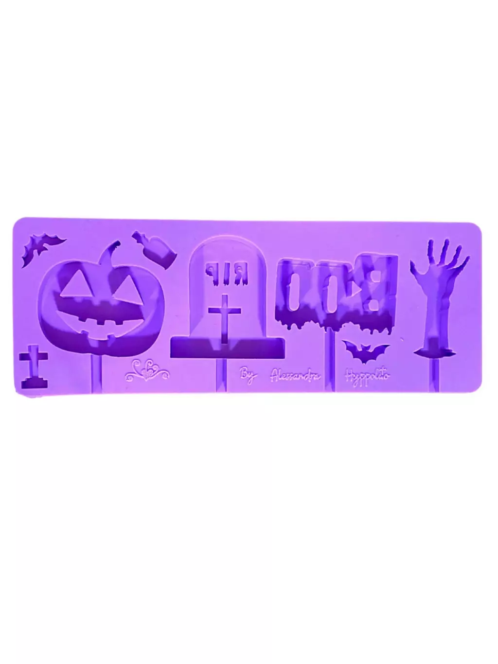Molde de silicone para pirulitos com 4 cavidades,medida total do molde 19x7cm, cada pirulito mede por volta de 5cm. Coleção By Alessandra Hyppolito.